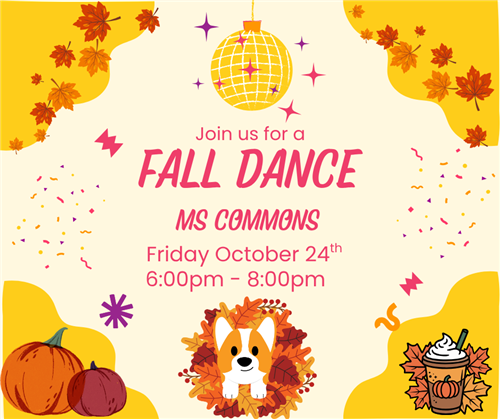 October 24 = MS "Fall" Dance MS Commons 6:00-8:00pm
