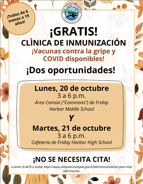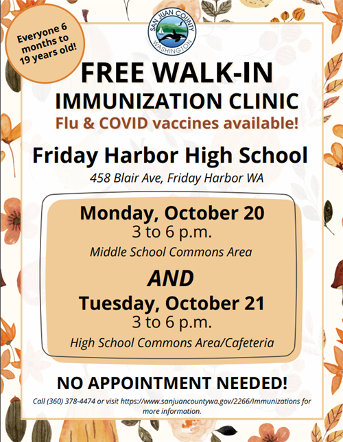 October 20 = Student Flu Vaccine Clinic MC Commons 2:00-6:00pm