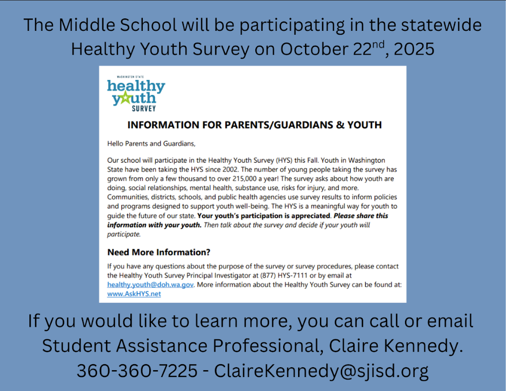October 22 = MS Healthy Youth Survey w/ Ms. Claire
